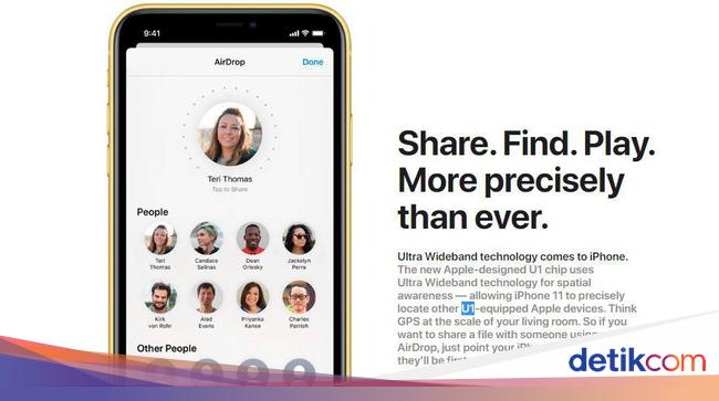 Kemampuan luar biasa yang mereka maksud adalah peningkatan akurasi AirDrop di iOS 13 ketika dipakai mengirimkan data. Dengan chip U1, pengguna bisa mengarahkan iPhone-nya ke orang yang akan menerima data tersebut.
