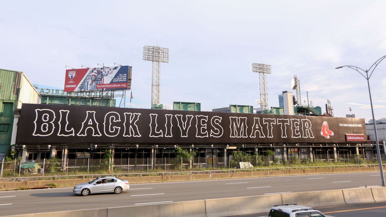 Players wore Black Lives Matter T-shirts, and a Major League Baseball-issued Black Lives Matter sign was spread across the center-field bleachers.